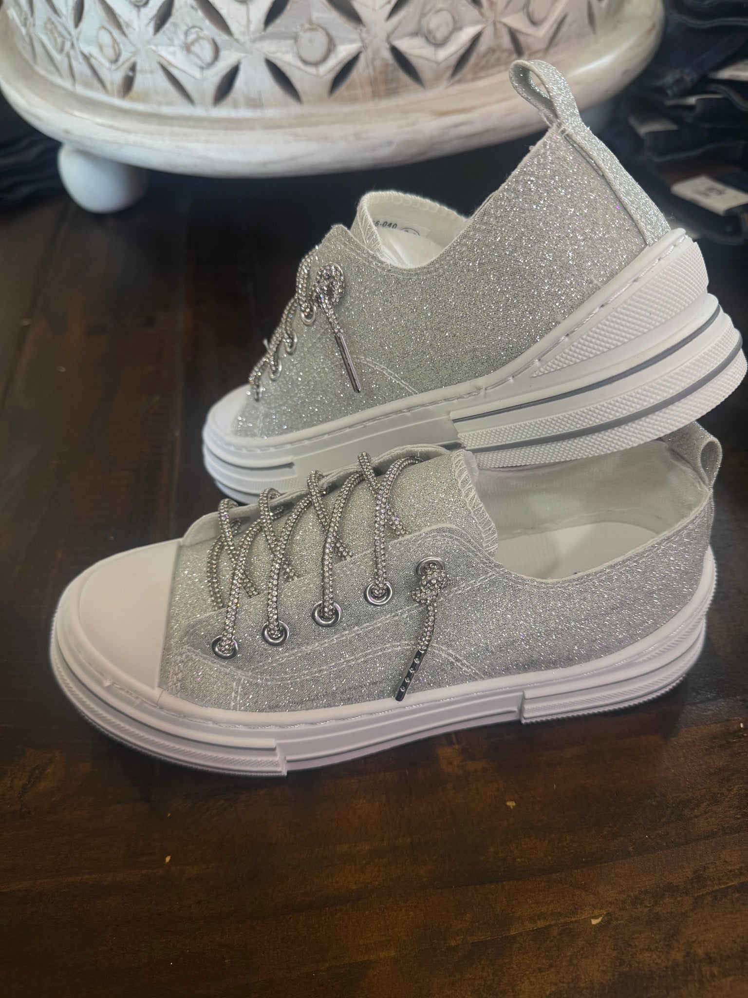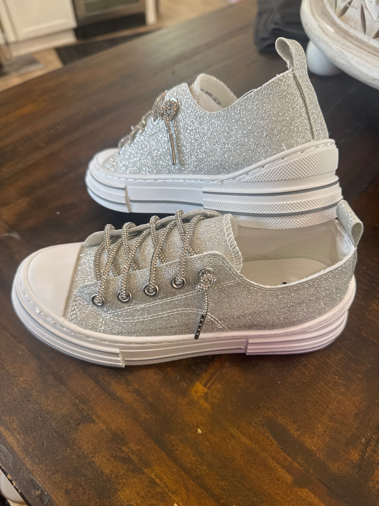VERY G AMAN SLIVER GLITTER RHINESTONE TENNIS SHOES